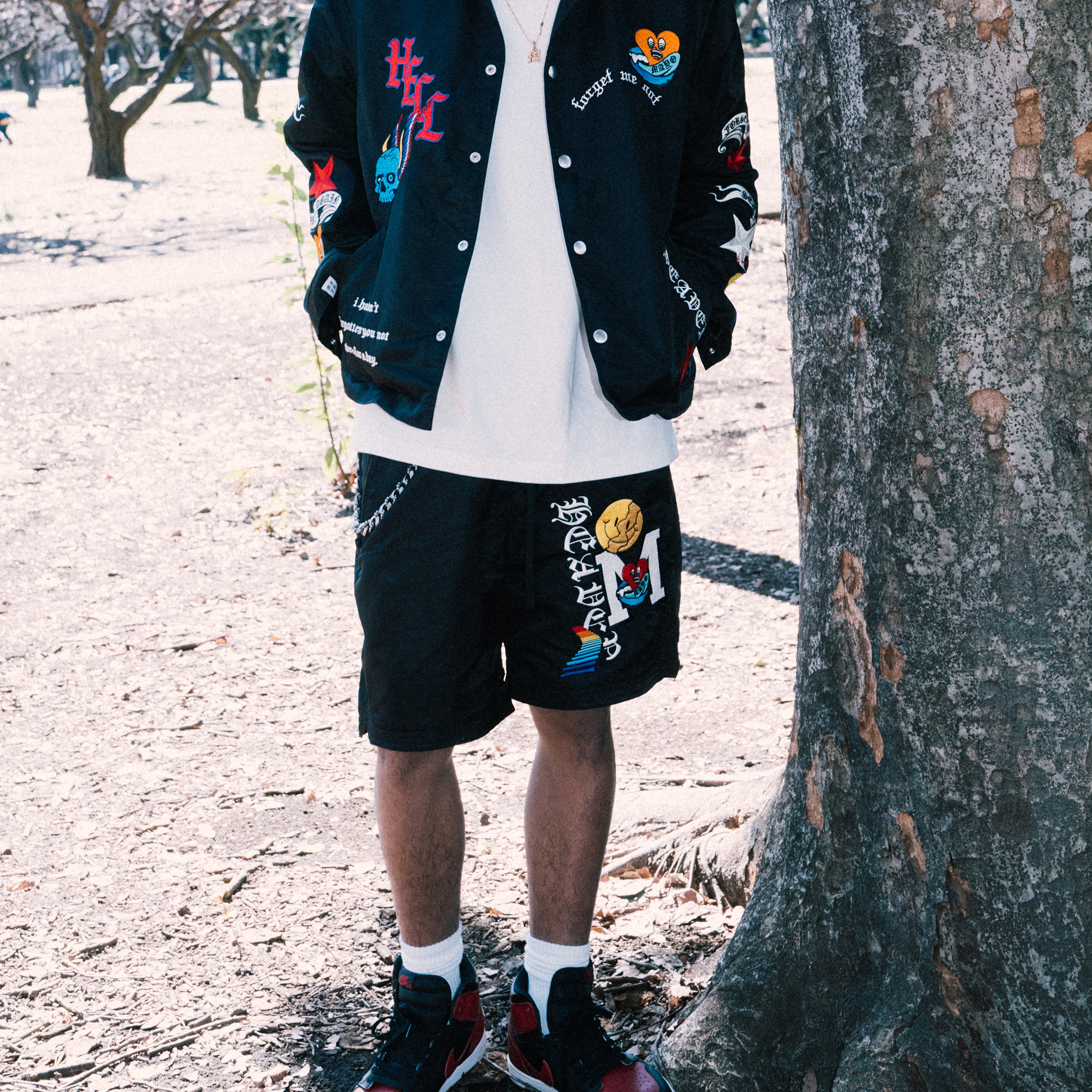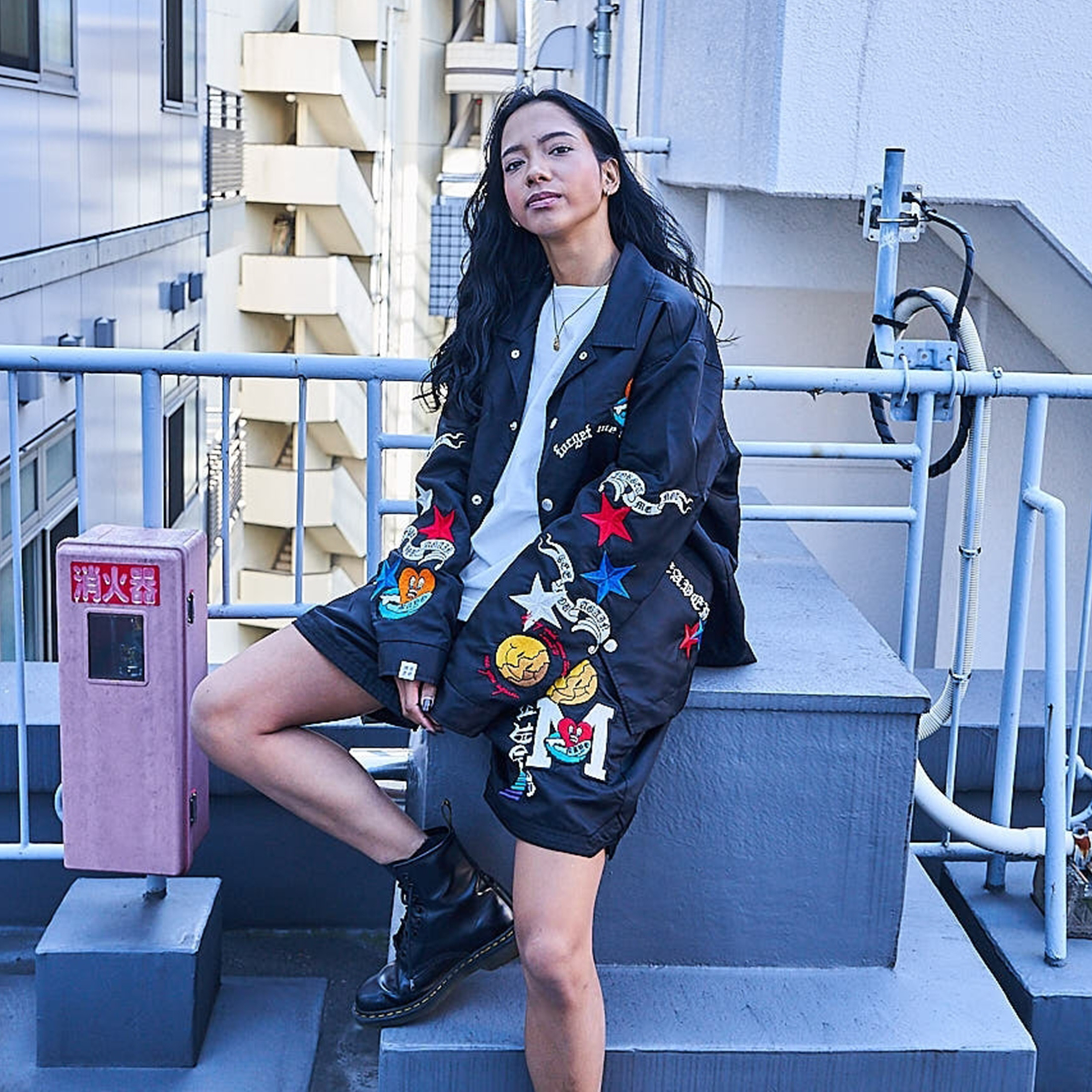 スカジャンコーチ共にセットアップで着用可能。